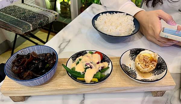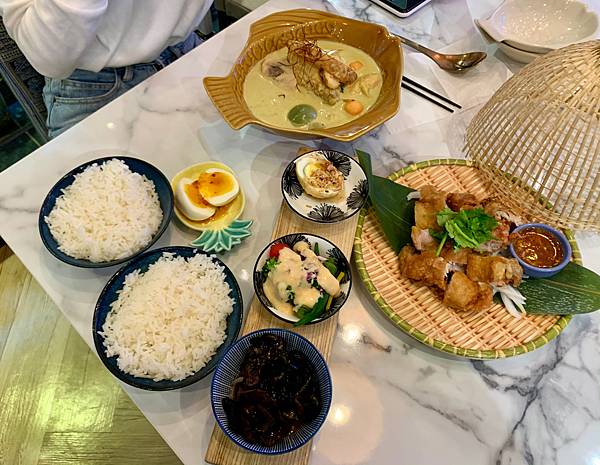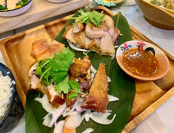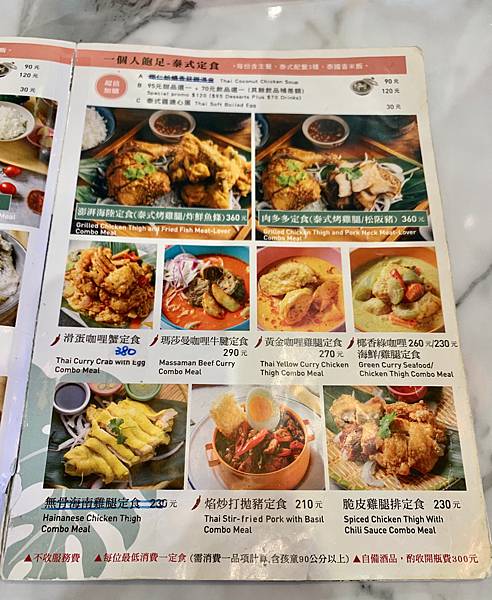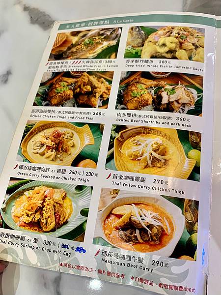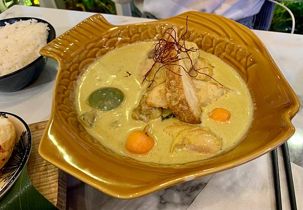嫩雞、炸酥皮的炸雞腿,嫩中不失咬勁的松阪豬肉,辣味、濃郁咖喱味的綠咖哩雞腿,也是只有一個嫩字形容的雞腿肉,還有馬鈴薯在其中。米飯則是標準的泰國式長米(粒粒分明不粘糊)。用餐環境乾淨、可刷卡。